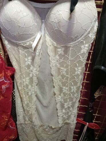 - Model 4: Bela čipkana spavaćica. Kalupirane korpice, središnji satenski detalj‑mašnica, bogata floralna čipka sa providnim panelima, blago talasasti rub.