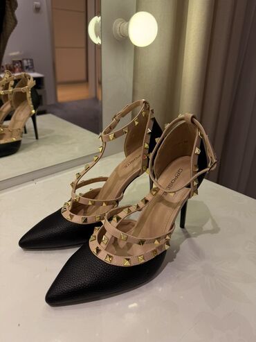 - Dizajn: crno reljefno gornjište i bež kaiševi ukrašeni zlatnim piramidalnim nitnama