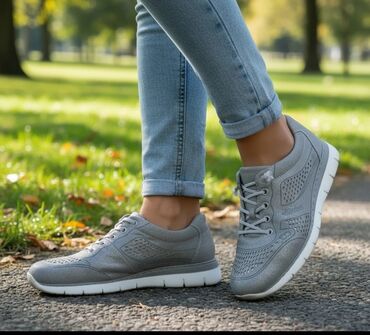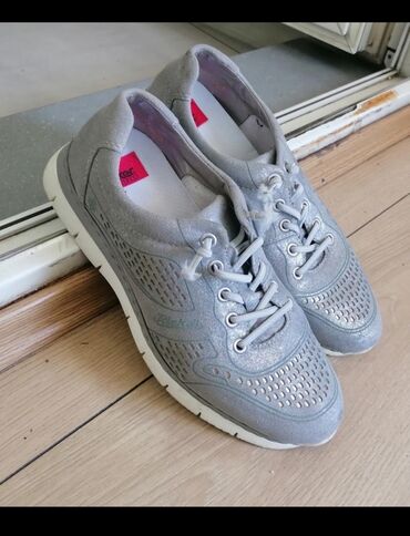 Srebrno-sive ženske patike sa vezivanjem i perforacijama