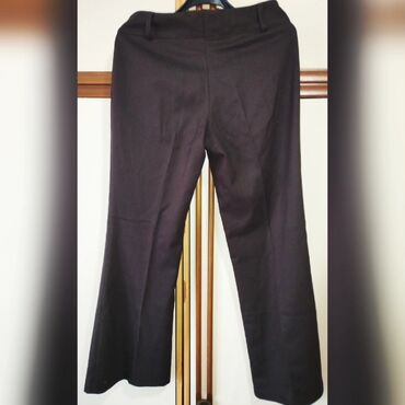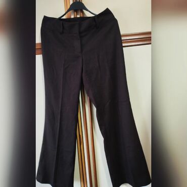 Crne pantalone – veličina L. Klasičan kroj sa naborima napred, prednji džepovi, kopčanje na dugme i rajsferšlus. Materijal gladak, prijatan na dodir. Mere: - Dužina: 100 cm - Poluobim struka: 40–4...