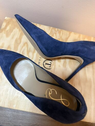 Elegantne ženske salonke – tamnoplave, od prevrnute kože (velur)