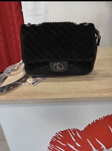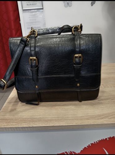 Mona crna ženska torbica preko ramena sa velikim zlatnim slovom „M“ na preklopu. - Materijal: glatka koža (look mat, čvrsta struktura) - Boja: crna sa zlatnim metalnim detaljima - Zatvaranje: pre...