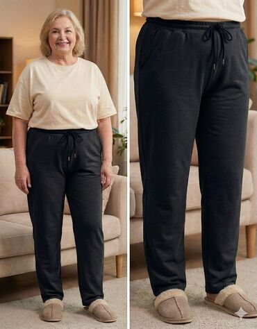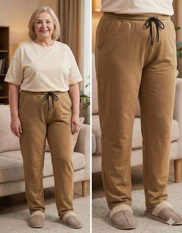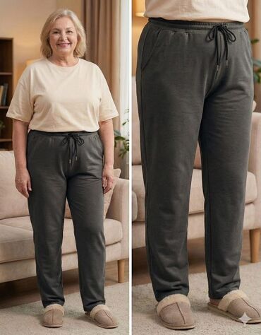 Donji delovi trenerke od pamuka – ženski kroj, udobni i meki za svakodnevno nošenje. - Materijal: 100% pamuk (prijatan na koži, prozračan) - Kroj: ravne nogavice, elastičan pojas sa učkurom za pod...
