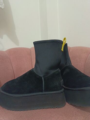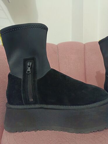 UGG ženske zimske patike/čizme sa platformom - Model: gležnjače sa toplom, mekanom postavom i krznom oko jezika - Gornjište: kombinacija brušene kože i tekstila - Đon: visoka platforma sa izraženi...