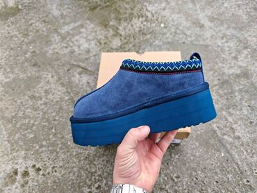 - Detalji: dekorativni pleteni/rik-rak obod u plavo‑tirkiznim nijansama sa crvenim prošivom; diskretan UGG logo sa strane; jezičak/tračica pozadi za lakše obuvanje