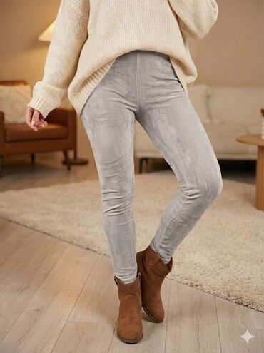 H&M ženske pantalone/helanke od eko-kože - Model: uske, sa šavovima duž nogavica - Boja: topla karamela/kamel - Materijal: mekana veštačka koža sa unutrašnjom postavom za udobnost - Struk: elastič...