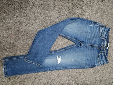 - Boja/pranje: klasično srednje plavo sa izbleđivanjem i „distressed” detaljima na butinama i džepu