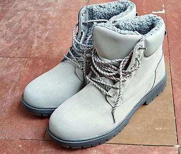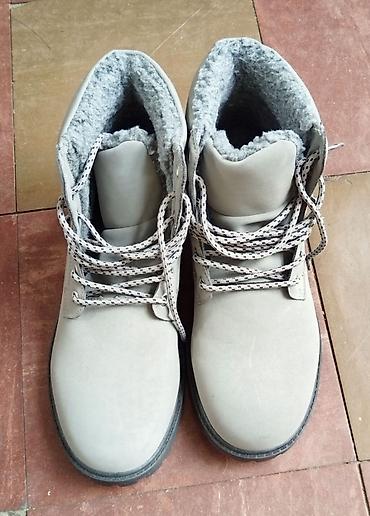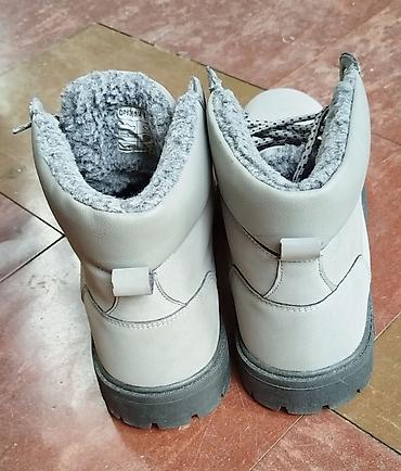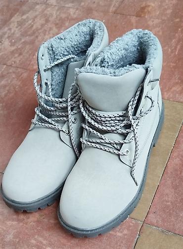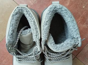 Bele kožne zimske čizme sa pertlama - Materijal: glatka bela koža spolja, meka postava iznutra. - Model: gležnjače sa klasičnim pertlanjem kroz metalne rupice. - Đon: debeli gumeni đon sa izraženi...