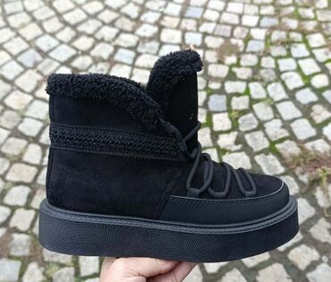 Ženske zimske čizme sa punom platformom i toplom krznenom postavom. Dostupne varijante: bež i crna, više modela sa pertlama i metalnim kukicama. Spoljašnjost od meke brušene kože/velura, unutrašnjo...