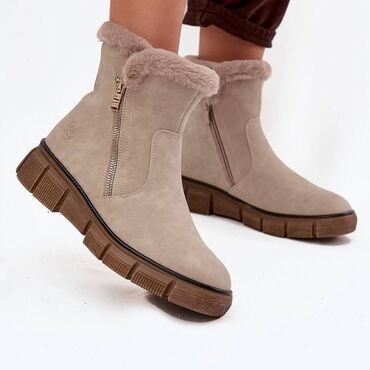 Drugi brendŽenske zimske čizme sa unutrašnjom postavom od mekanog veštačkog krzna. Poluduboki model do iznad članka pruža toplotu i stabilnost tokom hladnih dana.