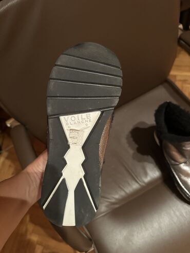 - Đon: gumeni, dvoslojni, crno-beli sa izraženim profilom za dobro prianjanje; na đonu utisnut logo „VOILE BLANCHE“