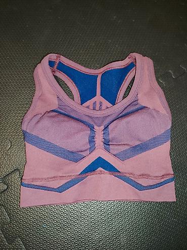 Sportski grudnjak sa oblikovanim (lagano postavljenim) korpama i „racerback“ leđima. - Boja: krem sa svetloplavim ivicama i lastišem - Kroj: bez žica, šire naramenice koje se spajaju na leđima za ...