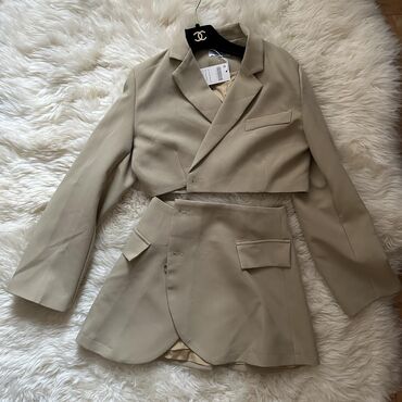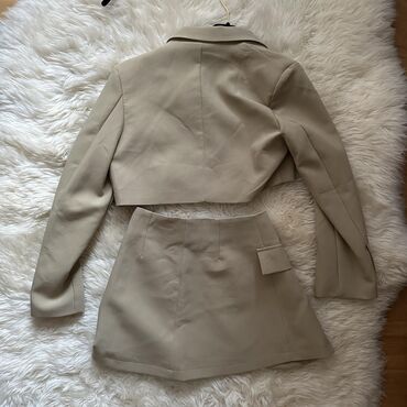 Dvodjelni komplet – kratki sako i mini suknja u bež boji.