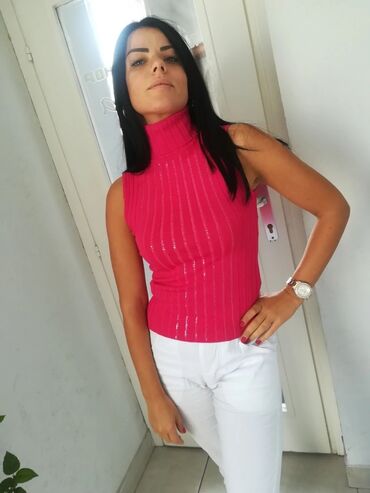 - Materijal: elastični rebrasti pletivo koje lepo prati liniju tela