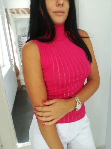 Ženski bezrukavni rolka-top u jarko ružičastoj boji.