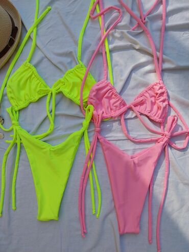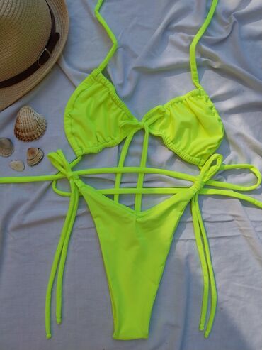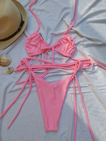 Ženski bikini set – trodelni trouglasti gornji deo i visokokrojeni donji deo sa vezivanjem.