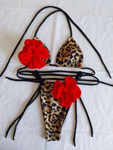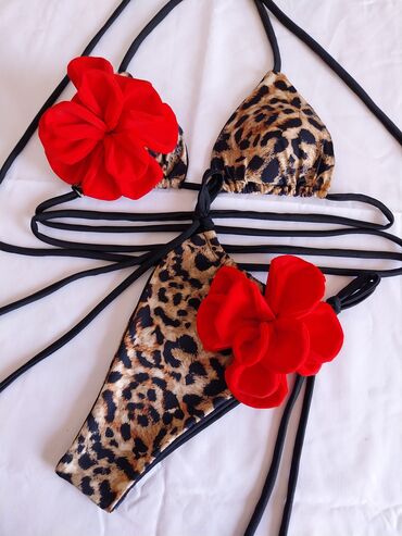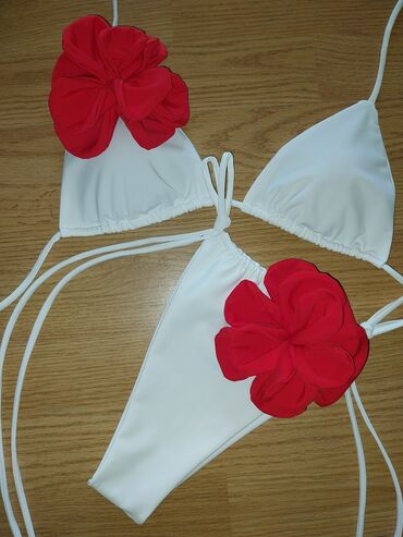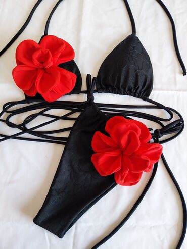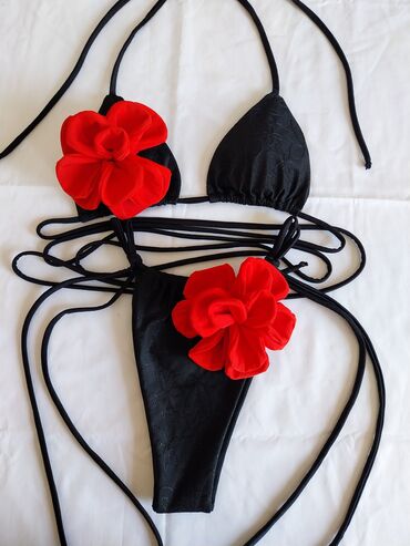 U paketu: gornji i donji deo bikinija u odabranoj boji sa dekorativnim crvenim cvetovima.