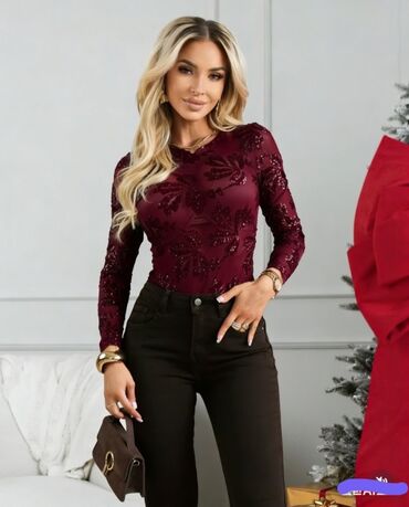 O trošku kupca💫Ženski elegantni bodi sa dugim rukavima, ukrašen bogatim šljokicama u floralnom reljefnom dezenu.