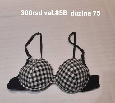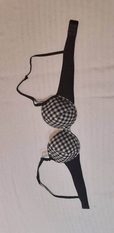 Grudnjak sa žicom, crno‑beli karirani dezen. - Veličina: 85B (EUR 85B / FR 100B / GB 38B / USA XL; oznaka na etiketi) - Dužina obima: 75 cm (navedeno na slici) - Podesive bretele - Kopčanje pozadi ...