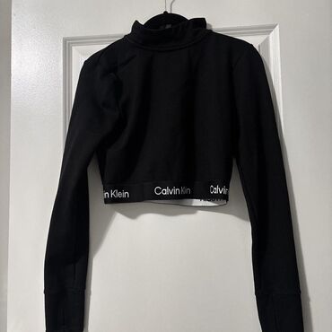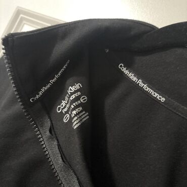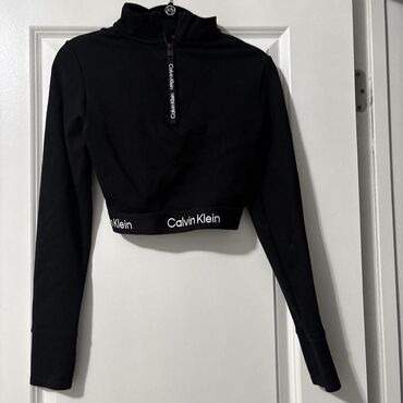 - Okrugli/visoki okovratnik sa kratkim rajsferšlusom napred; jezičak i traka na rajsferšlusu sa Calvin Klein logotipom