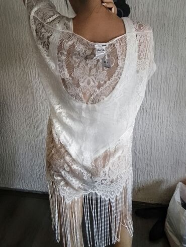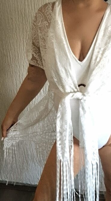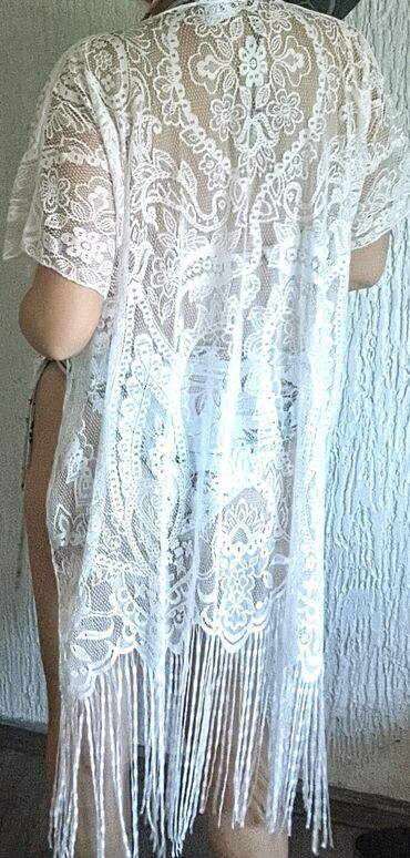 O trošku kupcaBeli, čipkani kimono sa resama. Lagan materijal čini ga idealnim za nošenje preko kupaćeg kostima na plaži ili bazenu. Kimono je otvoren napred i ima kratke rukave, što ga čini prozračnim i udobnim za tople dane. Čipka daje elegantan izgled, a rese dodaju dozu razigranosti.