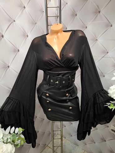 🔥Crni ženski bodi sa širokim rukavima Bodi 3300 din Suknja 2500 din