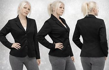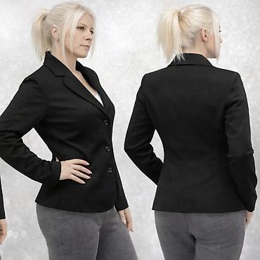 Ženski sako H&M, tamno plave boje. - Model: klasičan strukirani blejzer sa reverom. - Kopčanje: jedan dugmić napred; rukavi sa po jednim dugmetom. - Džepovi: dva uska paspul džepa napred (dekorati...