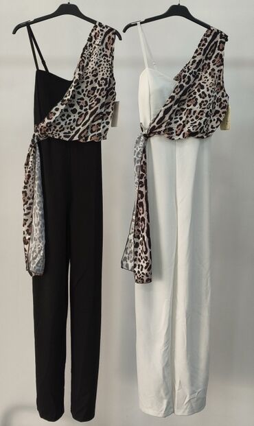 💥Elegantni ženski kombinezon – crni, sa leopard šalom/trakom 1800 din
