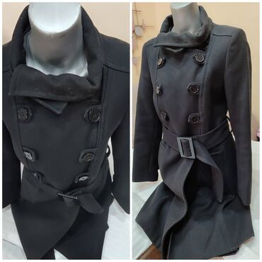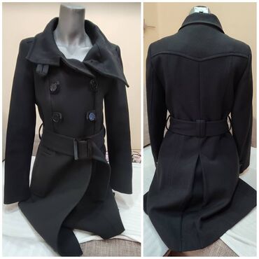 Elegantni crni kaput sa duplim kopčanjem (dvoredno), dužine do ispod kukova. Klasičan rever, epolete na ramenima, kaiš u struku sa metalnom kopčom i petljama, dekorativni i funkcionalni dugmići nap...