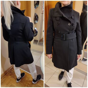 Elegantan ženski kaput – dvoredno kopčanje - Kroj: klasičan, strukiran, dužina do kolena - Materijal (etiketa): 40% vuna, 32% poliester, 24% akril, 4% elastan – postava glatka, prijatna na dodir -...
