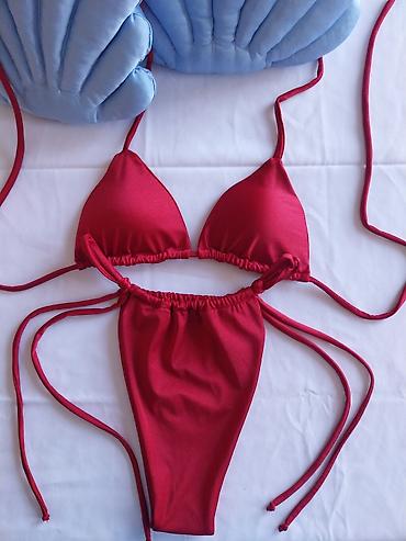 - Model: klasični “triangle” gornji deo sa kliznim korpicama i vezivanjem oko vrata i leđa; donji deo sa visokim izrezom i bočnim vezivanjem.