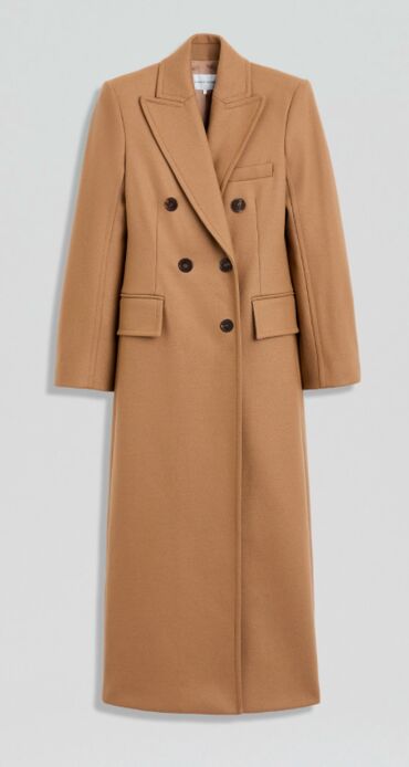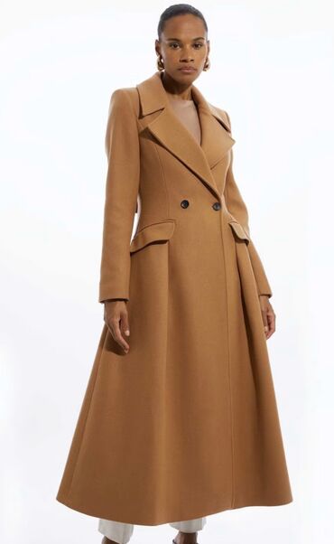 Ovaj elegantni ženski kaput u boji kamile ističe se svojim dvostrukim kopčanjem sa četiri vidljiva dugmeta na prednjoj strani. Dizajniran je sa preklopljenom kragnom i reverima, kao i dva funkcionalna džepa sa preklopom u donjem delu. Na levom gornjem delu nalazi se mali džep sa preklopom, dodajući poseban detalj. Dugi kroj kaputa pruža izduženu siluetu i pokrivenost, idealnu za prelazne periode i hladnije dane. Klasičan dizajn i neutralna boja čine ga svestranim komadom odeće koji se lako kombinuje. Idealan za poslovne sastanke, formalne događaje ili svakodnevne kombinacije koje zahtevaju prefinjenost.