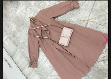 Damski kaput/kaput-haljina u svetloplavoj boji. - Kroj: midi dužina do ispod kolena, ravna silueta sa pojasom za strukiranje - Kopčanje: dugmad duž cele prednje strane - Kragna: klasična košulja-k...