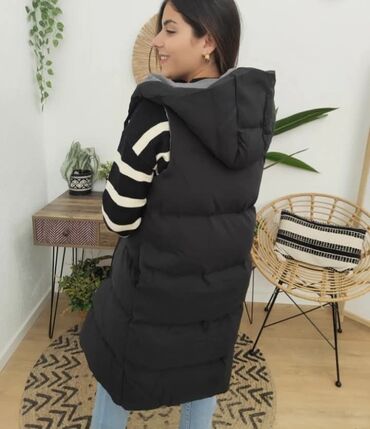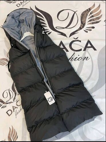 Duga ženska prsluk-jakna bez rukava, brenda Orcelly Fashion, veličina S. Model u crnoj boji, quilted/štepovan, sa kapuljačom i crnim učkurima sa metalnim završecima. Spoljašnji materijal izgleda ka...4 100 RSD