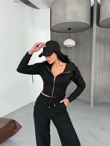 Ženski komplet trenerke od pliša - Dvodijelni set: gornji deo sa rajsferšlusom i kapuljačom, donji deo sa elastičnim pojasom i ranflama na nogavicama. - Materijal: meki, baršunasti pliš koji je ...
