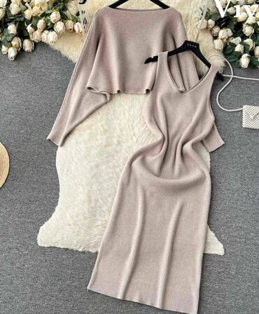 O trošku kupca💥Ženski dvodelni pleteni komplet – haljina + džemper
