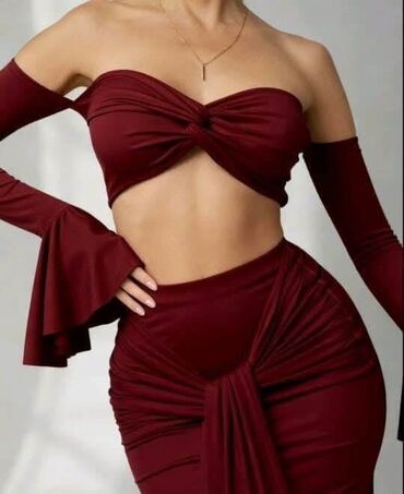 🔥Dvodelni ženski set – top bez bretela i suknja visokog struka 🔥2999