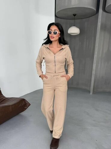 Ženski komplet trenerke od pliša - Dvodijelni set: gornji deo sa rajsferšlusom i kapuljačom, donji deo sa elastičnim pojasom i ranflama na nogavicama. - Materijal: meki, baršunasti pliš koji je ...