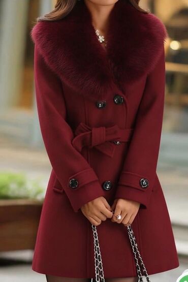 - Materijal: topla, mekana tkanina sa glatkom postavom (vizuelno nalik vuni), krzneni detalj na kragni