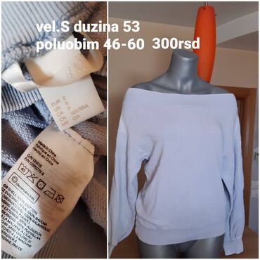 Bluza/džemper na spuštena ramena, svetloplave boje.