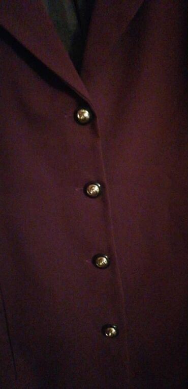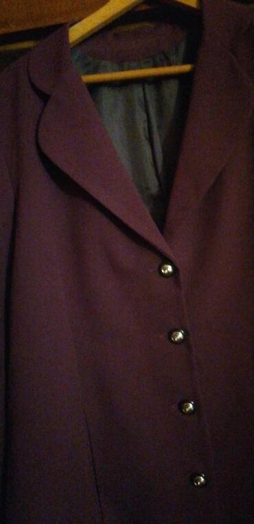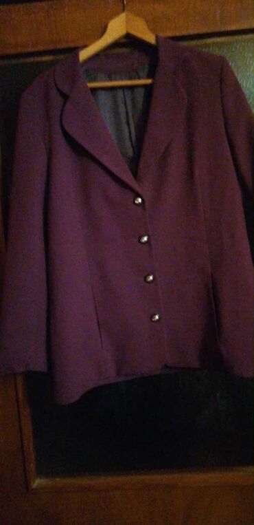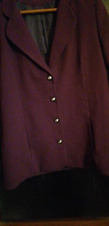 Ženska elegantna jakna/sako – tamnoljubičaste boje. Klasičan kroj sa reverima i pet zlatnih dugmadi napred. Dužina do kukova, blago strukiran model sa štepovima koji naglašavaju liniju. Unutrašnja postava u kontrastnoj, tamnosivoj nijansi. Materijal je gladak i kompaktnog pada (sintetički miks na dodir), pogodan za poslovne i svečane kombinacije. Neutralan dizajn bez džepova sa spoljne strane. Odličan izbor uz pantalone ili suknju, za kancelariju ili formalne prilike. Boja: tamna purpurna/šljiva. Dugmad: metalik zlatna. Rever: klasičan, zaobljenih ivica. Postava: kompletna, tamnosiva.