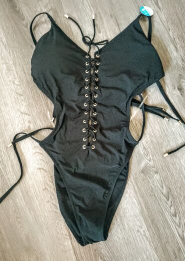 Drugi proizvođačCrni New Jorker jednodelni kupaći kostim sa ukrasnim vezivanjem pertlama na prednjoj strani i pozadi. Tanke bretele se mogu podešavati. Idealan za plažu ili bazen.