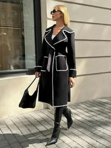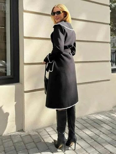 Ženski kaput – sivo, asimetrično kopčanje - Model sa širokim, preklopnim kragnom - Asimetričan prednji rajsferšlus u crnoj boji - Dva bočna džepa sa vertikalnim otvorom i crnim obrubom - Kontrastn...