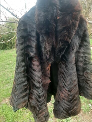 Prirodno krzno kaput – veličina L - Materijal: prirodno krzno, bogata, tamno‑braon nijansa sa prirodnom šarom - Kroj: klasičan, ravnog pada do ispod kukova - Kragna: široka, mekana - Postava: glat...