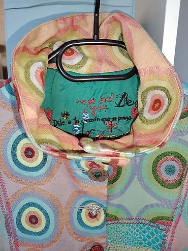 - Materijal: višebojna tkanina srednje težine, više tekstura (uključujući panel nalik koži/reljefnom uzorku).