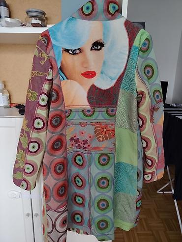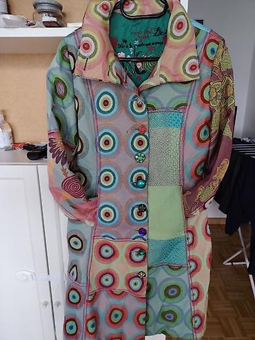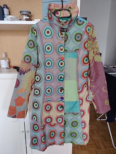 - Umjetnički kaput sa kombinacijom raznobojnih krugova, cvjetnih i geometrijskih motiva, rađen tehnikom patchwork.