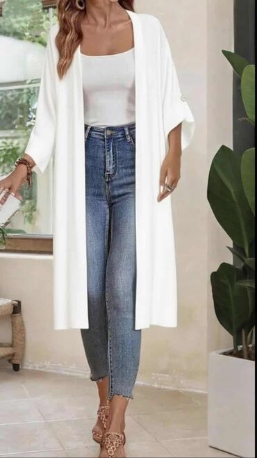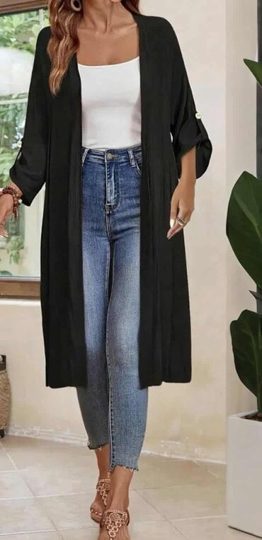 Predstavljamo elegantan ženski kardigan otvorenog kroja, dostupan u klasičnoj crnoj i čistoj beloj boji. Ovaj komad odeće je univerzalno nosiv i lako se kombinuje, idealan za prelazne sezone ili kao lagani dodatak preko majice ili bluze. Kardigan ima duge rukave koji se mogu podesiti i pričvrstiti dugmetom za opušteniji, podvrnuti izgled. Njegov ravan kroj bez kopčanja nudi fluidnost i udobnost, čineći ga pogodnim za razne prilike, od svakodnevnih do nešto formalnijih. Jednostavan dizajn omogućava lako uklapanje u različite modne stilove.Naborana tekstura materijala vizuelno obogaćuje kardigan, dodajući mu suptilnu dimenziju. Ovaj lagani kardigan je odličan izbor za sve koji traže praktičan i stilizovan slojeviti komad odeće.Idealan za kombinovanje sa farmerkama i majicom za ležeran izgled, ili preko elegantnije bluze za poslovne ili večernje izlaske. Karakteristike:Dužina: Srednja Materijal: Lagani, naborani tkanina Rukavi: Dugi, sa mogućnošću podvrštanja i pričvršćivanja dugmetom Kopčanje: Otvoren kroj, bez kopčanja Dostupne boje: Crna i bela Stil: Casual, elegantan, višenamenski.Dostupni brojevi: S, M, L, XL, XXL.Univerzalni kroj. Pogodan za razne prilike.