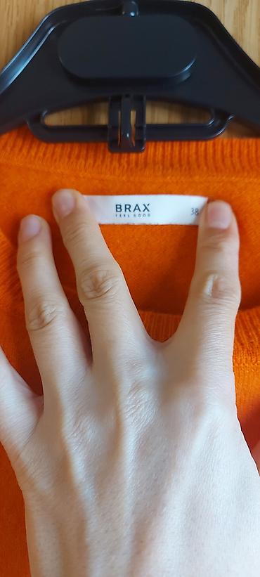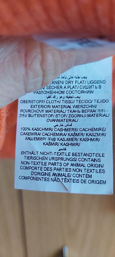 Bluza je od cistog kasmira, blagi oversized, kao sto stoji na etiketi, 38 vel. Blago narandzasta, ne mogu lepo da uslikam boju.