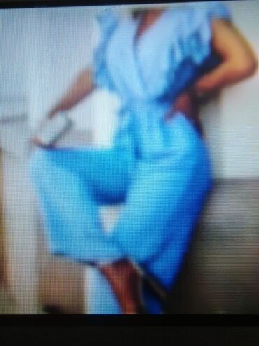 Presladak Springfield kombinezon, svetlo plave boje, na bretele na vezivanje, sa gumom u struku, kratkih nogavica,na raskopčavanje napred na dugmiće, sa džepovima napred i pozadi. Veličina 34.Mate...
