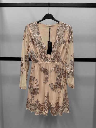 ✨Elegantni ženski kombinezon/mini haljina u boji šampanjca sa šljokicama.
